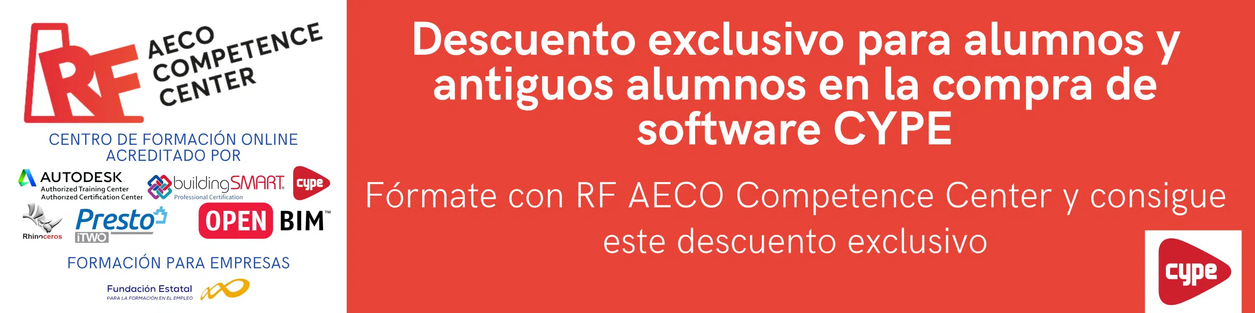 Descuento exclusivo software CYPE, para los alumnos y antiguos alumnos de RF AECO Competence Center. Somos un de centro de formación que ofrece formación y certificación en software técnico para los profesionales de la arquitectura, ingeniería y construcción. Contamos con cursos online acreditados de Cype Ingenieros y mucho más. Nuestros profesores son expertos en su campo y te ayudarán a adquirir las competencias necesarias para desarrollar tus proyectos con éxito.